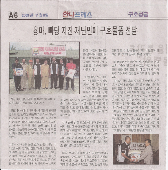 / 2009 YongMa delivered relief items to the earth quake victims in Padang